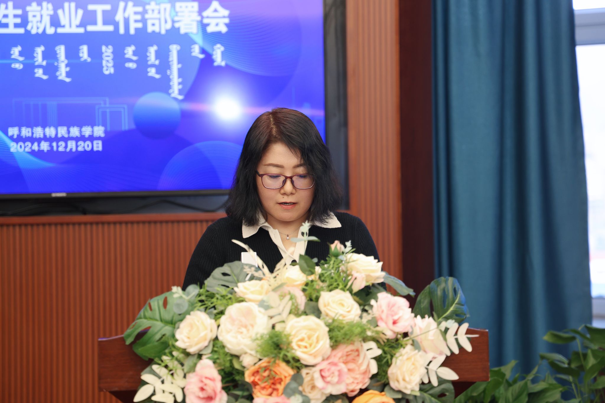 招生就业处处长娜仁其木格通报学校2024届毕业生去向落实率及各学院落实情况。