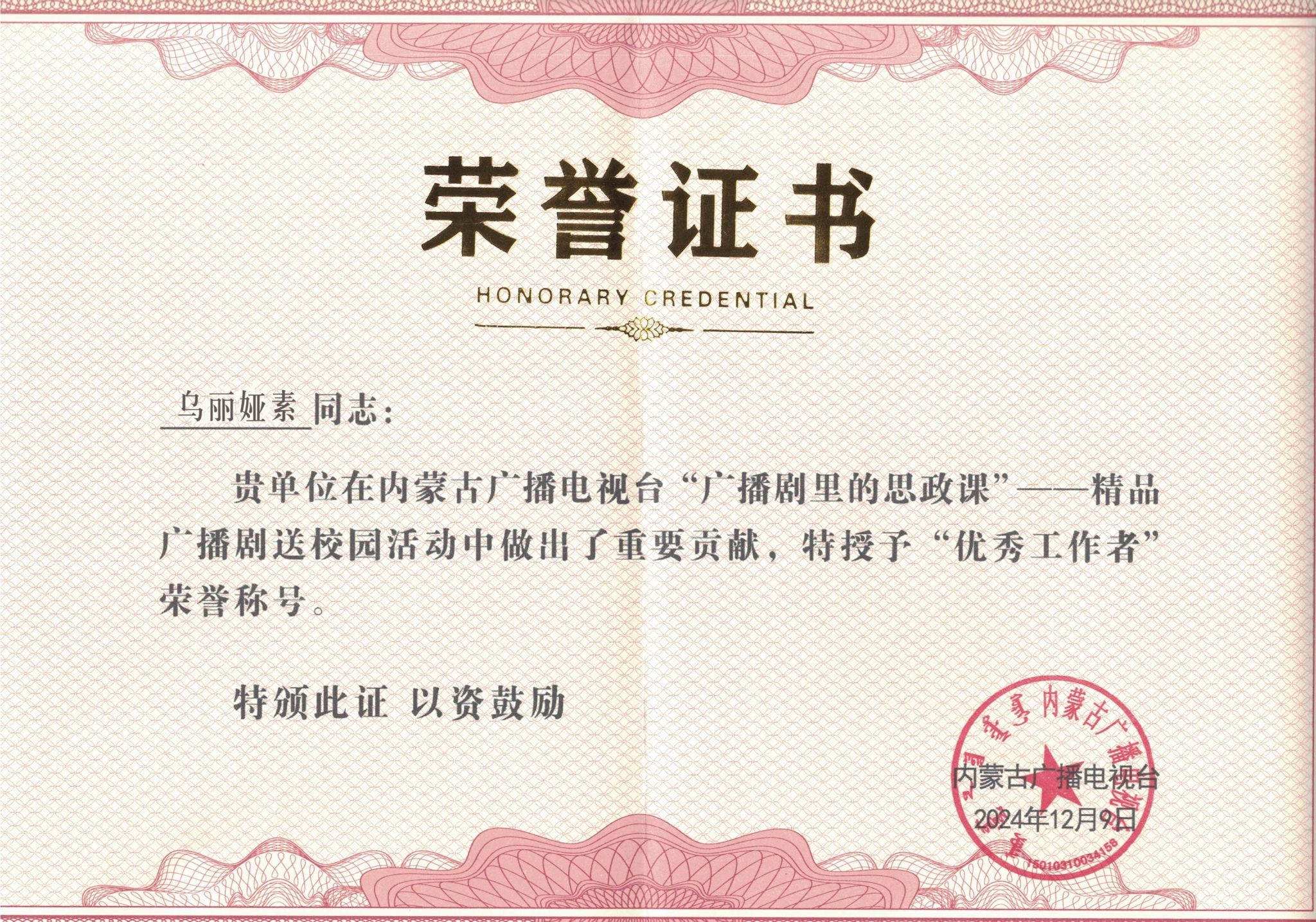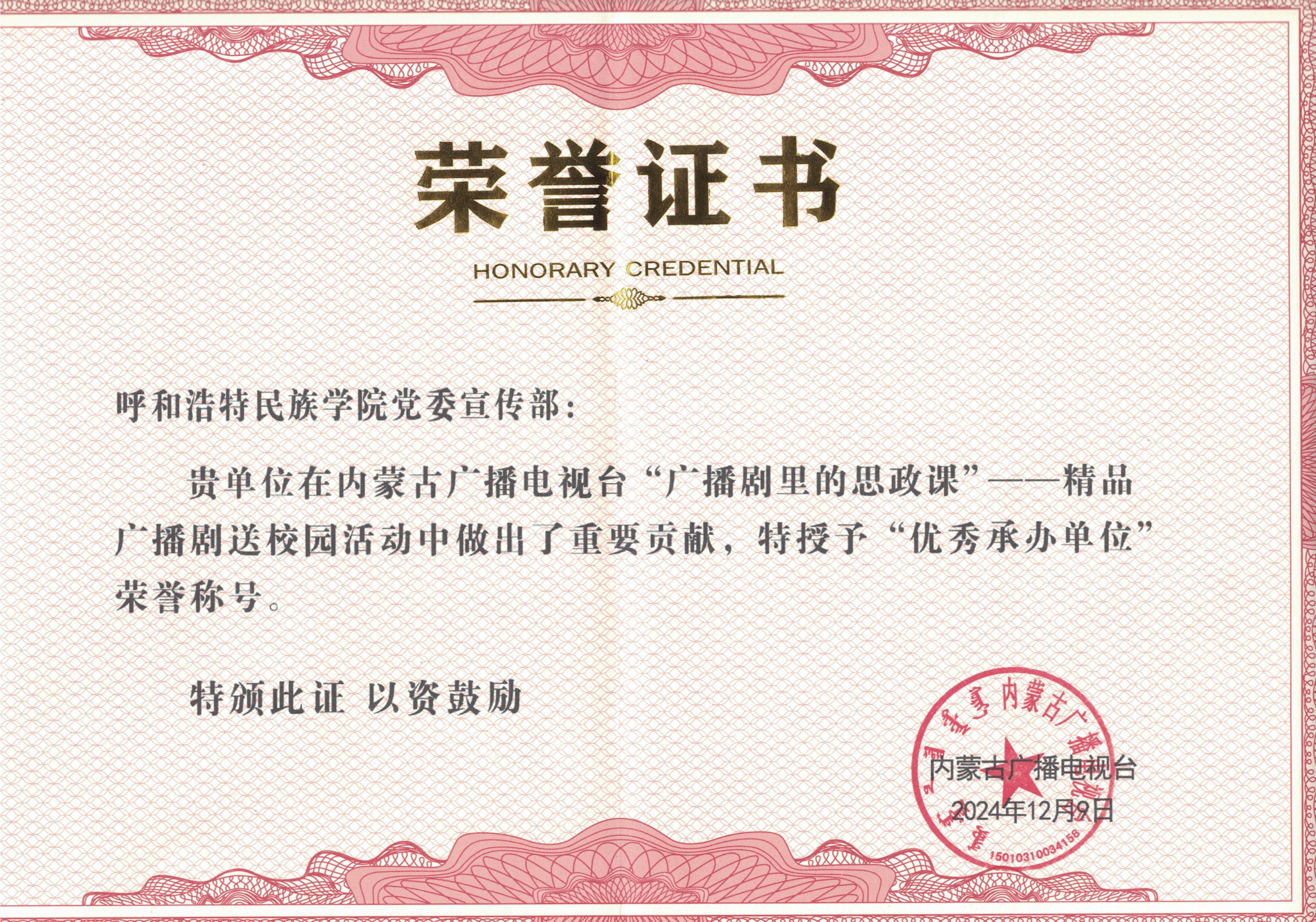 近日,鸭脖承办的内蒙古广播电视台“广播剧里的思政课”活动完美落幕。党委宣传部获得优秀承办单位称号,乌丽娅素、石延祺等5名师生获得优秀工作者称号。