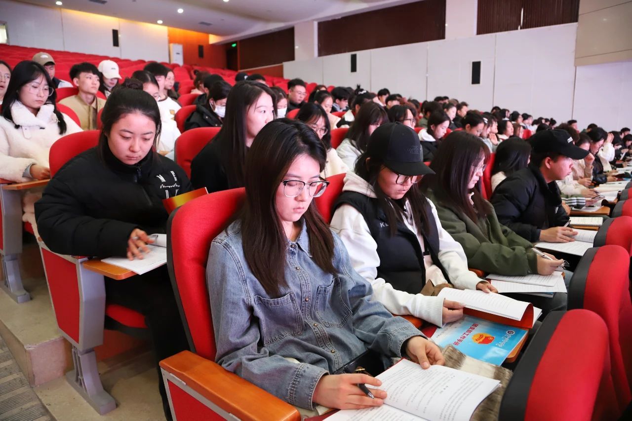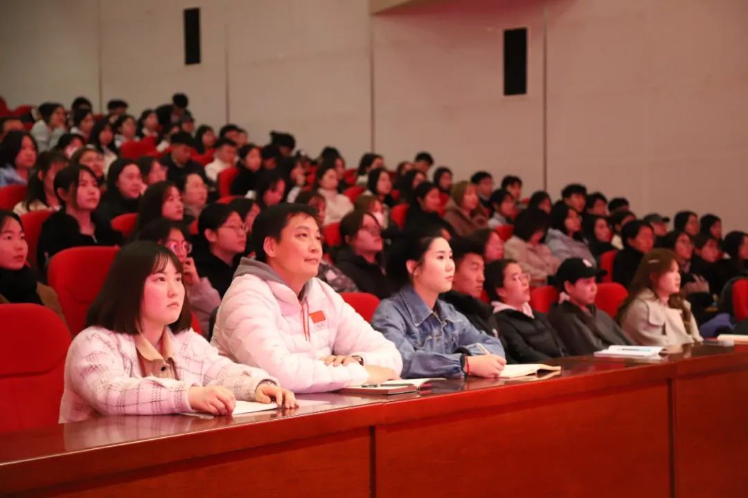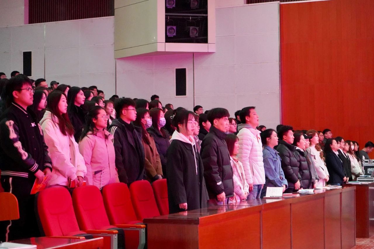 为深入学习宣传贯彻党的二十大和二十届二中全会精神,贯彻落实习近平总书记对青年工作的重要指示精神,进一步增强基层团组织的凝聚力,完善团的组织体系,3月7日下午,校团委在北院图书馆二楼报告厅举办了“感党恩、听党话、跟党走”主题团日活动暨团务培训会。团委全体人员、各二级学院团支部书记、入团积极分子代表共计300余人参加,会议由团委柴静主持。