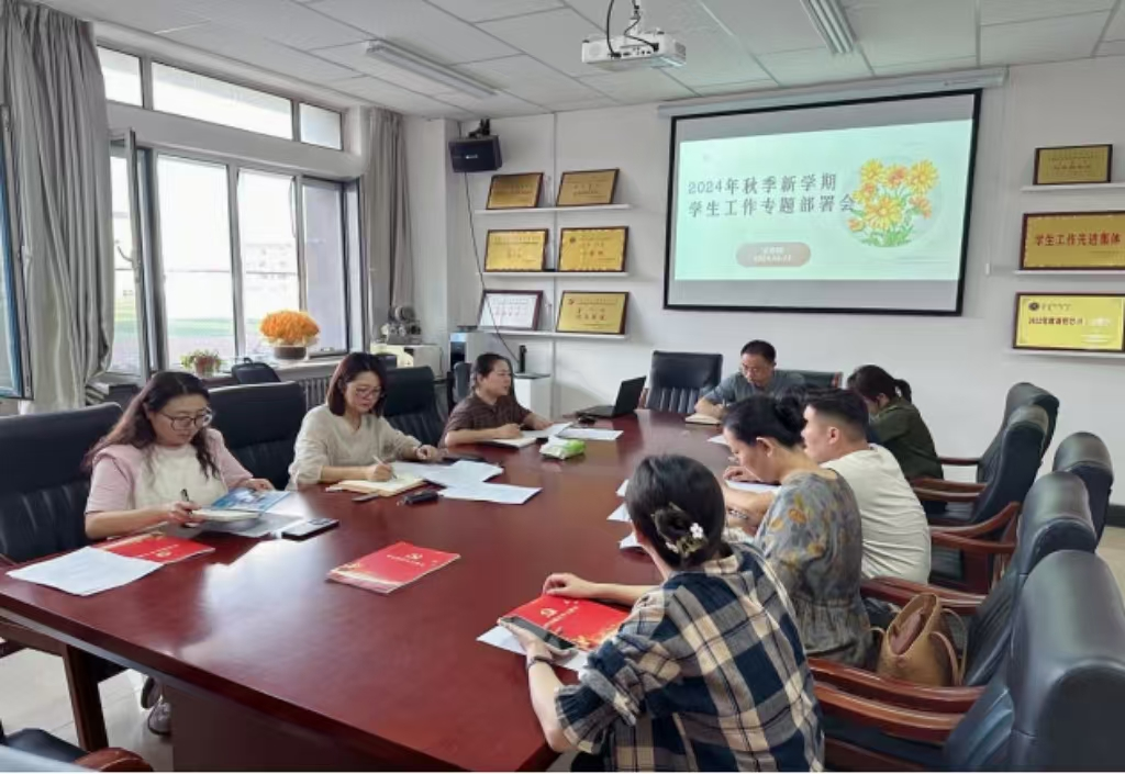 文学院在8月23日召开新学期学生工作专题部署会。会议由文学院党总支副书记包冬梅主持,全体班主任辅导员参加会议。