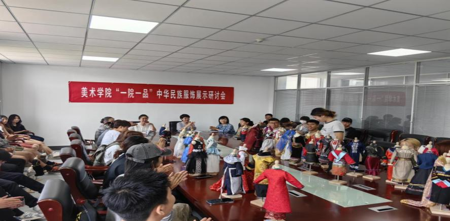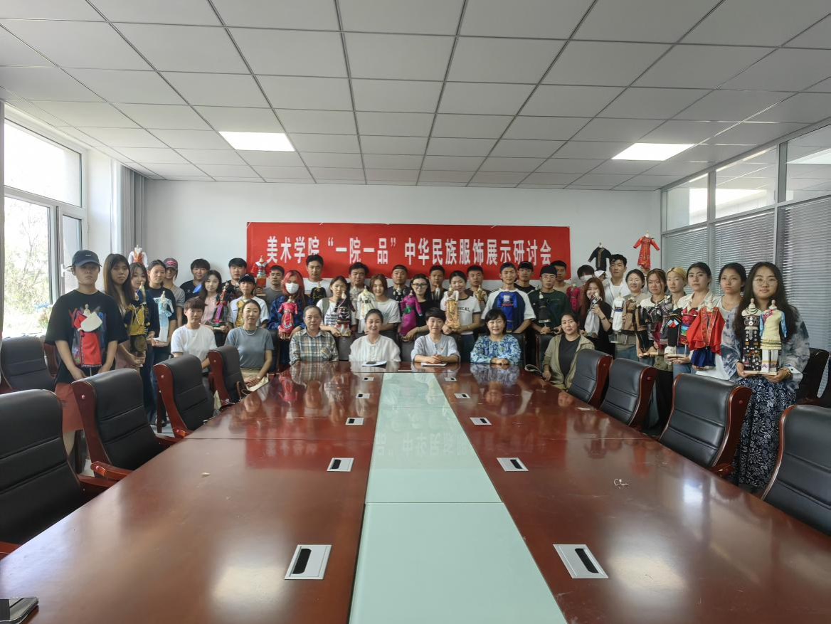 为进一步推动党建引领业务,有形有感有效地开展铸牢中华民族共同体意识教育,不断增强师生对中华民族的认同感和自豪感,6月20日,美术学院党总支组织服装设计教研室全体师生在沃德楼四楼会议室召开了“一院一品”中华民族服饰展示研讨会。研讨会由党总支书记吴利春主持,副处级组织员吉木斯,辅导员吴丰林以及服装设计教研室全体师生参加。