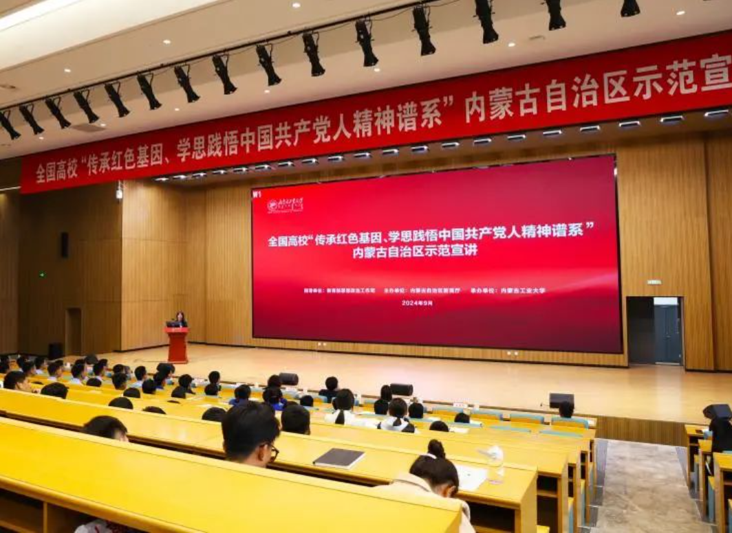 在中华人民共和国成立75周年之际,9月29日下午,由教育部思想政治工作司指导,内蒙古自治区教育厅主办的全国高校“传承红色基因、学思践悟中国共产党人精神谱系”内蒙古自治区示范宣讲活动在内蒙古工业大学举行。鸭脖党委宣传部、马克思主义学院干部代表和校园理论宣讲团成员、辅导员骨干7人赴现场聆听宣讲。