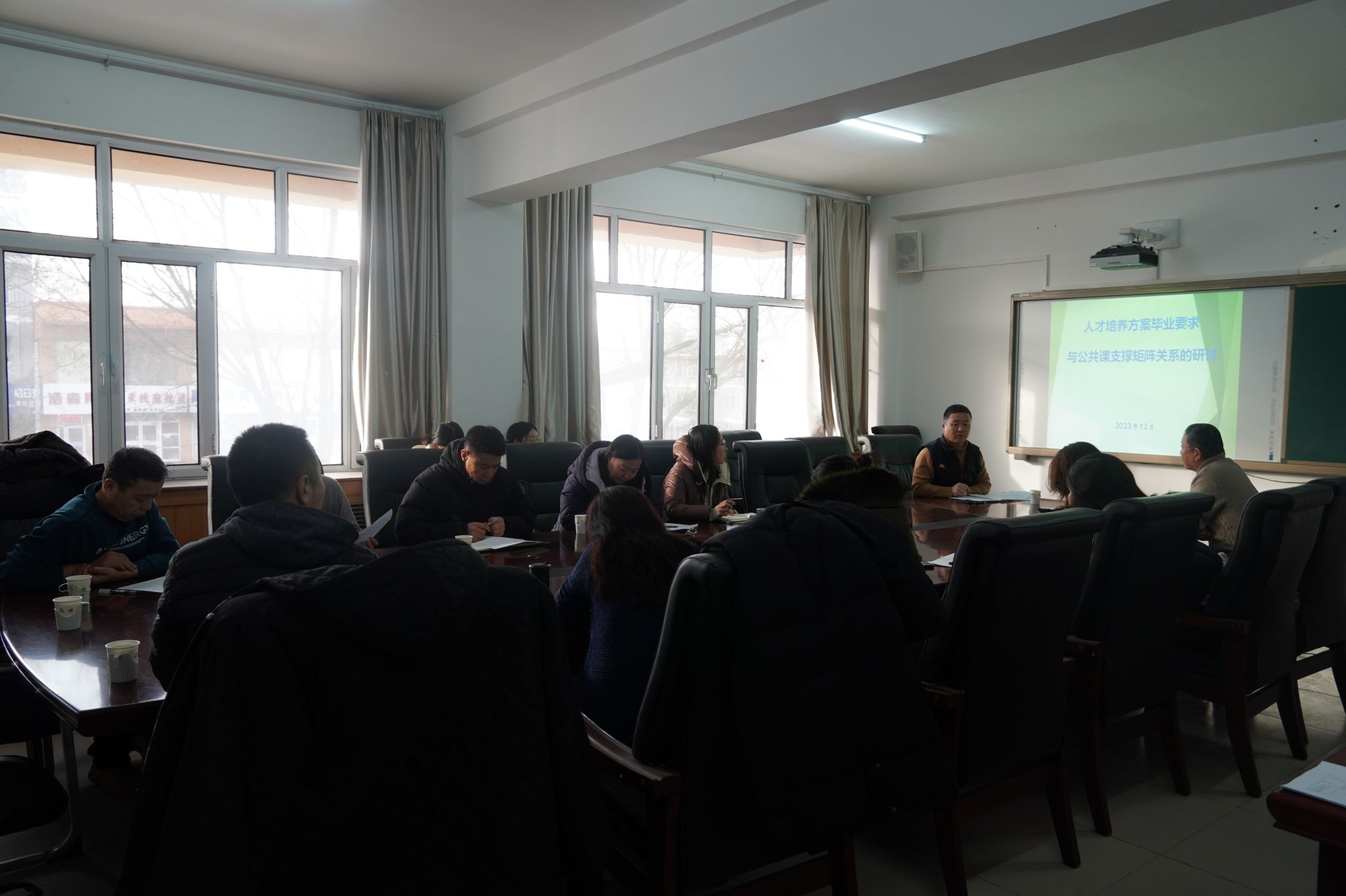 会上教师发展与教学评估中心胡毕斯哈拉图主任详细介绍了师范类专业毕业要求与公共课支撑内容的矩阵关系。并要求大家进一步明确课程目标,课程负责人要根据师范教育专业二级认证标准,认真研判“毕业要求”各项条款,厘清课程对毕业要求指标点的支撑关系及支撑度,合理设置公共类课程对毕业要求的支撑关系。