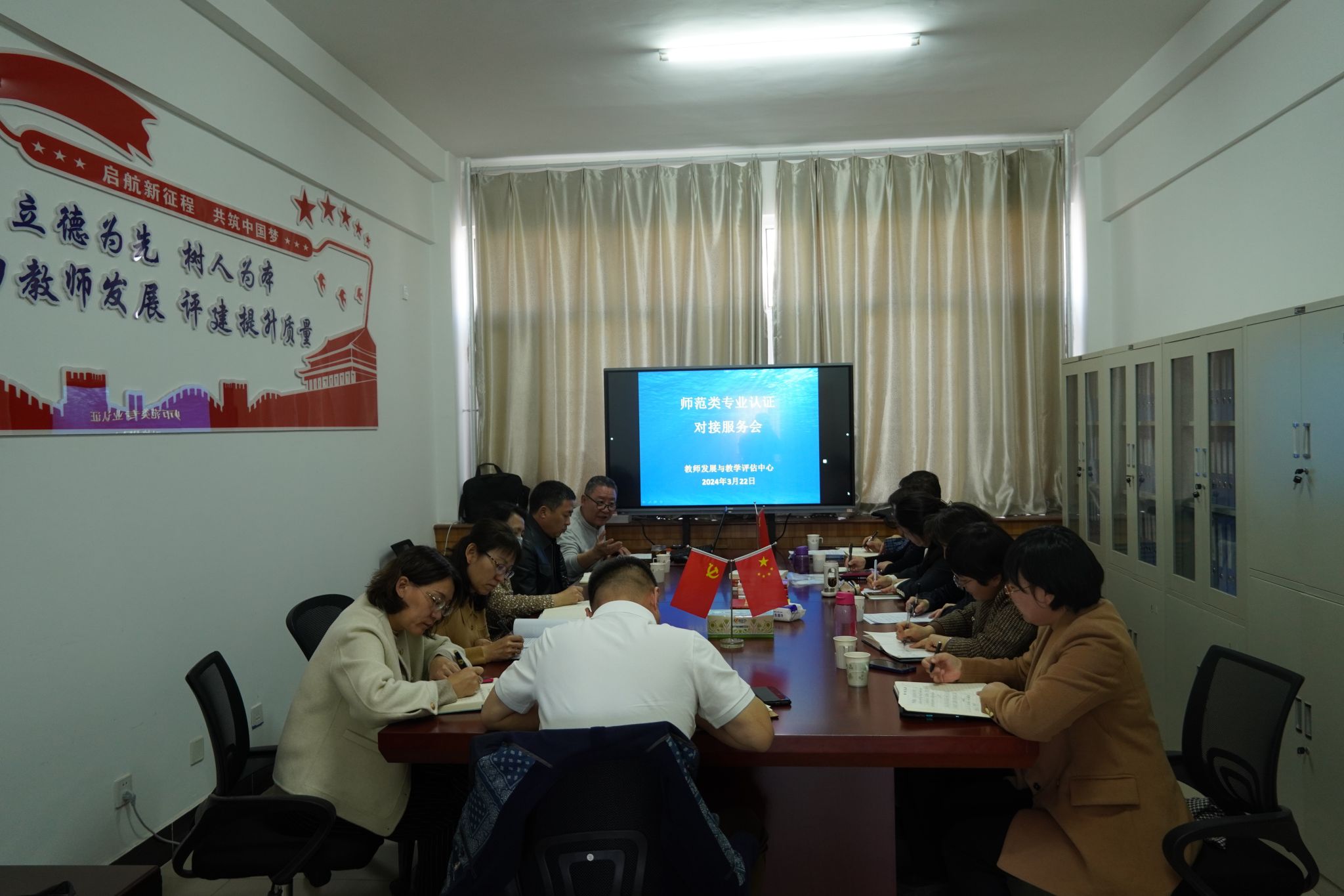 为扎实推进专业认证工作,督促二级学院有序开展相关工作,切实发挥职能部门作用,教师发展与教学评估中心3月14日下午和22日上午分两次组织学生处、财务处、教务处、人事处等职能部门和马克思主义学院、体育学院、学前教育学院等6个二级学院主要负责人和工作人员召开了师范类专业认证工作对接服务会。