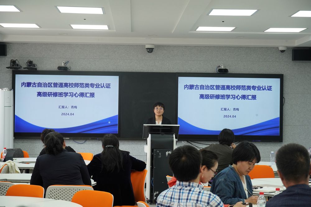 肖查娜、乌日根牧仁等参加全区普通高等学校师范类专业认证高级研修班的9名学员交流了培训心得和下一步工作思路。