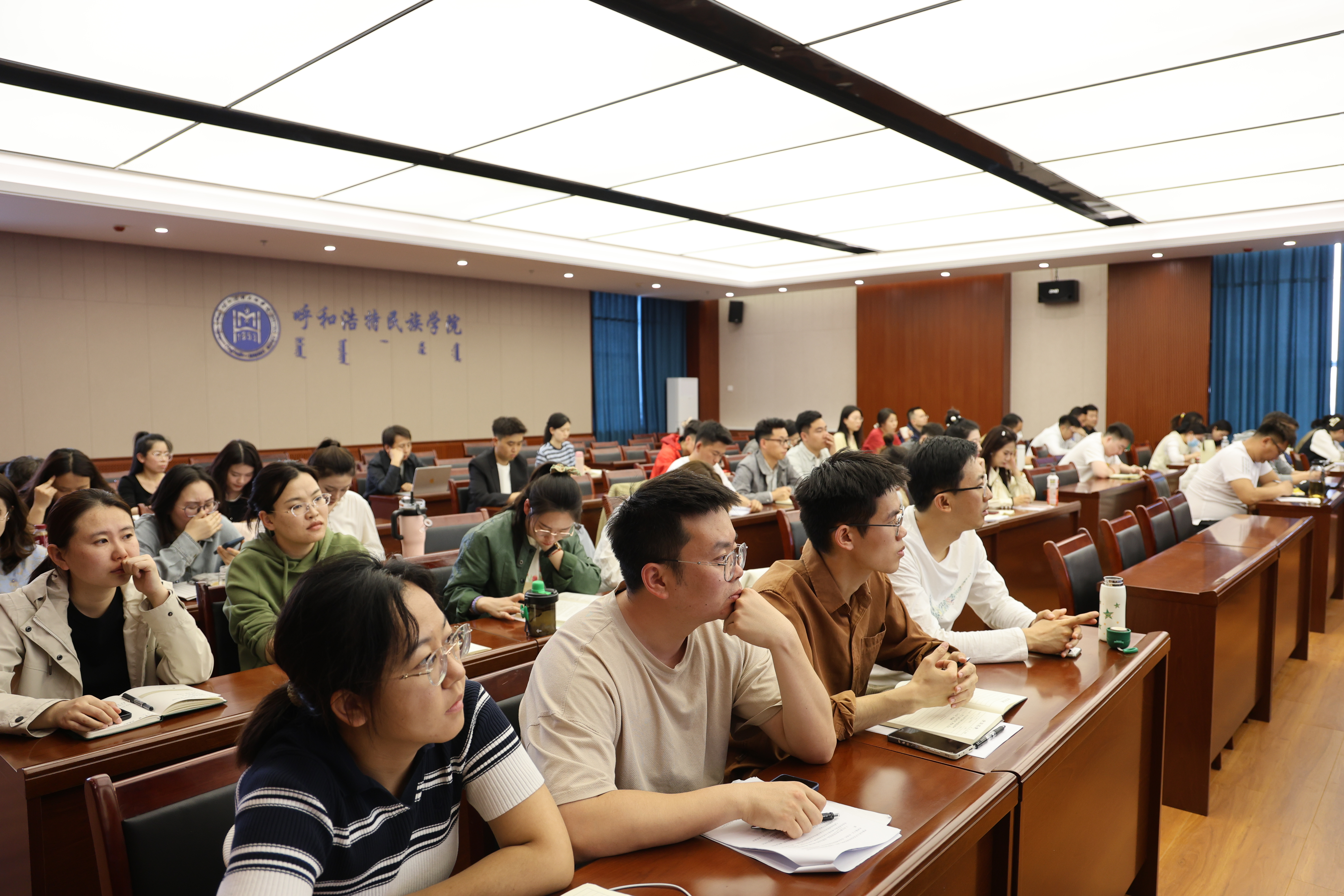 百年大计,教育为本,教育大计,教师为本。为深入贯彻落实党的教育方针,弘扬教育家精神,激励引导新入职教师坚定理想信念,树立“躬耕教坛 强国有我”的志向与抱负,4月10日下午,学校党委宣传部负责人张海峰为鸭脖新入职教师作《大力弘扬中国特有的教育家精神,争当“四有”好老师 争做“大先生”》的专题讲座,人事处副处长娜日娜主持本次讲座。