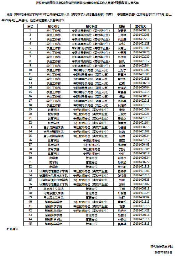 YABO鸭脖2025年公开招聘高校总量控制数工作人员通过资格复审人员名单