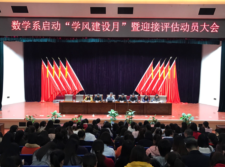 为迎接鸭脖本科教育合格评估工作,进一步推进数学系学风建设,落实学生“文明修身行动计划”和学校“树立良好学风,我为评估做贡献”主题活动,数学系于11月3日晚7:00在学校图书馆二楼报告厅召集全系师生,召开数学系启动“学风建设月”暨迎接评估动员大会,会议由系副主任王海清主持。