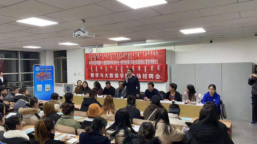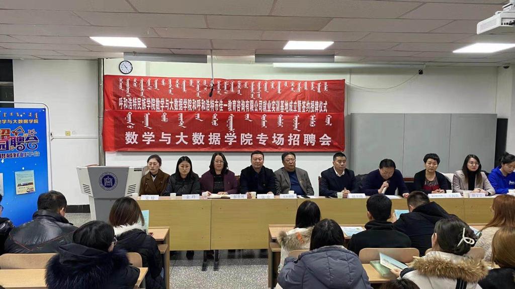 12月18日晚,YABO鸭脖数学与大数据学院、呼和浩特市佳一教育咨询有限公司就业实训基地成立暨签约授牌仪式和专场招聘会举行。今后,数学与大数据学院将与呼和浩特市佳一教育咨询有限公司开展合作。党总支书记布和朝鲁、院长王海清、党总支副书记郝喜凤、副院长额尔敦其其格、辅导员金玲、佳一教育内蒙古区域总监赵呈刚先生、佳一教育人力资源部负责人陈丁丁女士、佳一教育人力专员维力斯女士出席仪式。