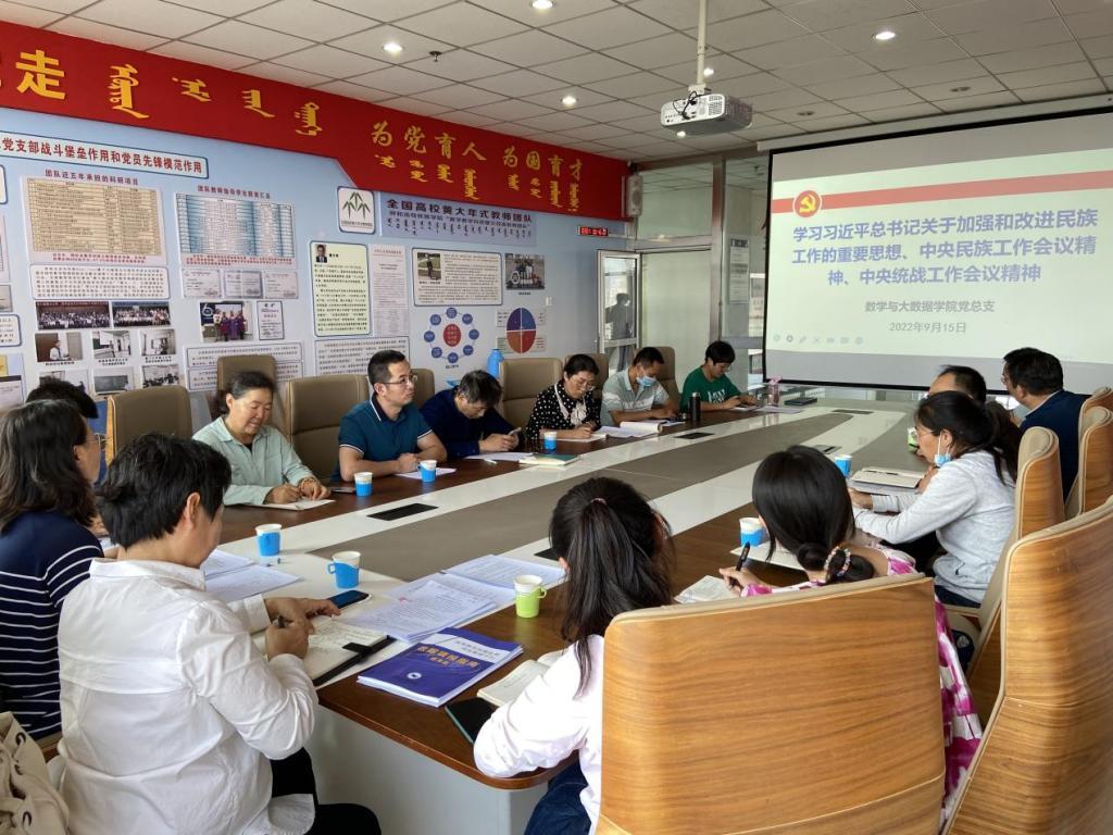 按照《YABO鸭脖第39个民族团结进步活动月实施方案》和《YABO鸭脖第25届推广普通话宣传周活动方案》要求,数学与大数据学院党总支于9月15日下午在黄大年式教师团队党支部活动室(综合楼807)组织召开党总支中心组扩大学习会,全体教职工参加会议,会议由党总支副书记郝喜凤主持。