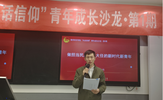 为进一步引领青年学子深入学习贯彻习近平新时代中国特色社会主义思想,增强自身使命意识与责任意识,争做有理想、敢担当、能吃苦、肯奋斗的新时代好青年,5月14日晚,数学科学学院在尚志楼423开展“共话信仰”青年成长沙龙·第一期活动。沙龙由学院团总支书记额日合木主持,学院“青马工程”培训班学员、各团支部代表、新发展团员代表共计90余名同学参与活动。