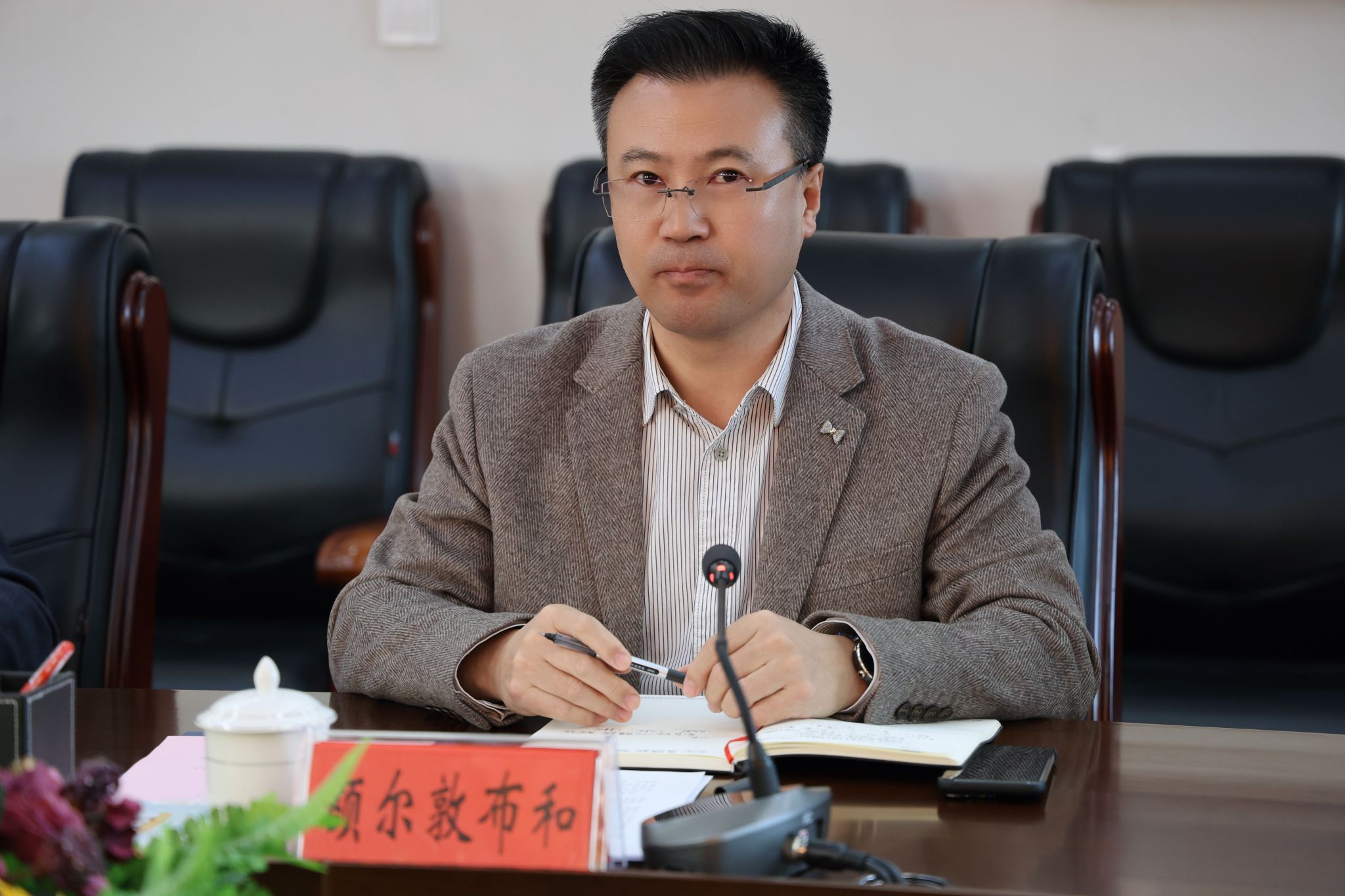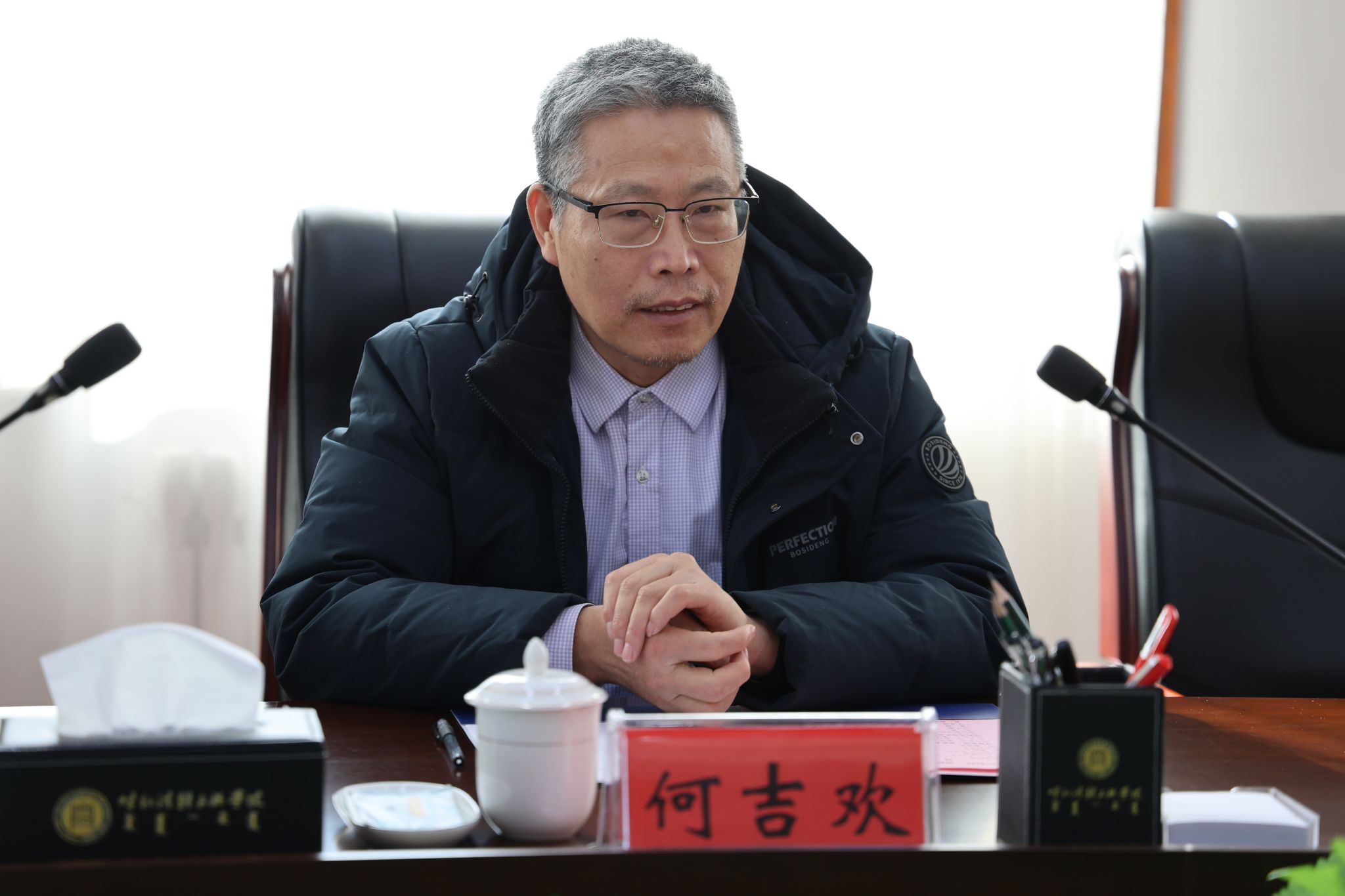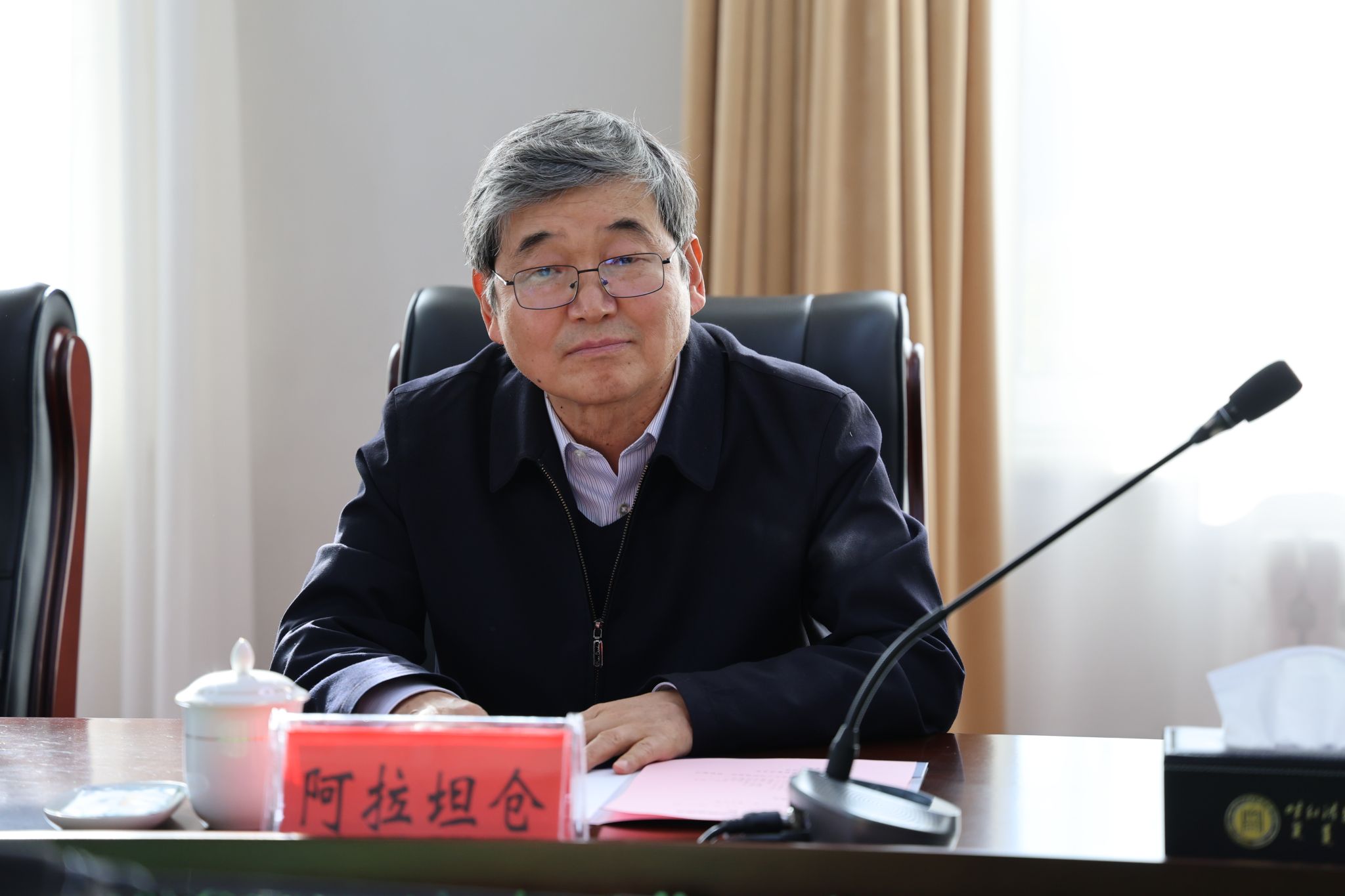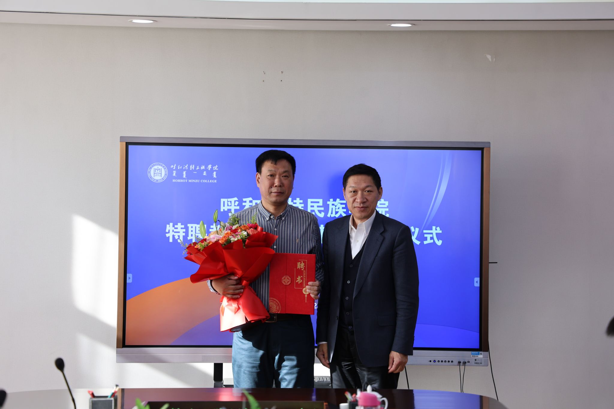 11月22日,学校在办公楼三楼会议室举行特聘教授、银龄教师聘任仪式。校党委书记刘九万出席会议并讲话,党委委员、副校长额尔敦布和,党委委员、副校长双虎出席会议,会议由双虎主持。