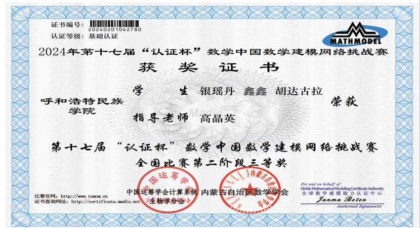 “认证杯”数学中国数学建模网络挑战赛是面向全国各高校大学生开展的一项赛事,也是全国大学生五大类竞赛之一的“高教社杯”全国大学生数学建模竞赛赛前的训练机会。通过组织学生参加此项比赛,激发了学生的学习数学、软件等知识和对现实问题深入探究的兴趣,促进了学生学以致用,有效助力力提升和发挥学生沟通协作、文献查阅、写作等综合能力。