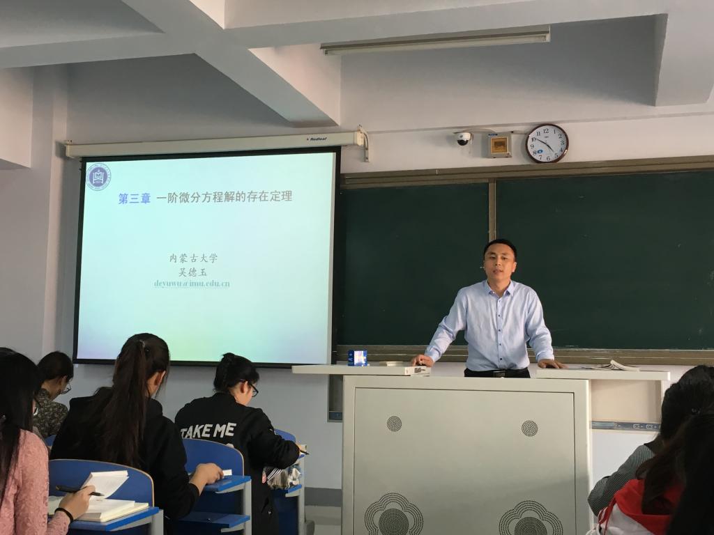 为了融入他人课堂,观看专家学过程,提供全体教师教学能力提升的学习平台,数学系组织全系教师观摩学习兼职教授课堂教学活动。数学系现有两名兼职教授,分别是内蒙古师范大学博士生导师套图格桑教授和内蒙古大学博士生导师吴德玉教授,从2017年以来两位教授承担鸭脖数学系数学类专业核心课程的教学任务。