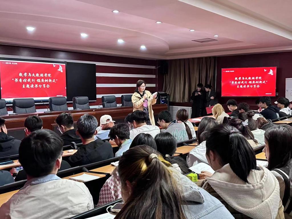 2023年是全面贯彻落实党的二十大精神的开局之年,在实现中华民族伟大复兴中国梦的征程中,读书可以坚定理想信念,凝聚精神力量,获取文化滋养。为了进一步激发同学们“爱读书、读好书、善读书”的积极性,养成良好的阅读习惯,营造良好的读书氛围,把深入开展学习贯彻习近平新时代中国特色社会主义思想主题教育与积极参与“读书月”活动结合起来。数学与大数据学院于4月25日晚上在尚智楼413报告厅举办“书香伴我行 倡廉树新风”主题读书分享会。