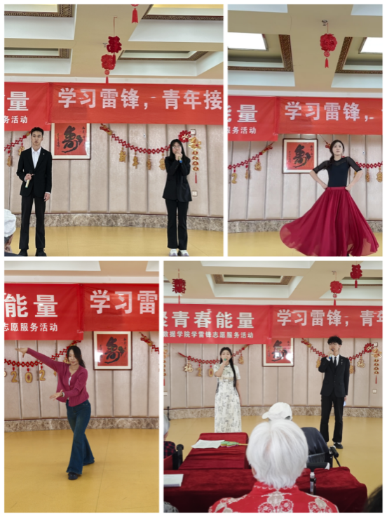 3月23日,数学与大数据学院团总支组织党团员志愿者走进呼和浩特市福康老年公寓,开展“弘扬雷锋精神,汇聚青春能量”主题志愿服务活动, 为老人们带来一场洋溢着温暖与欢乐的文艺慰问演出活动。