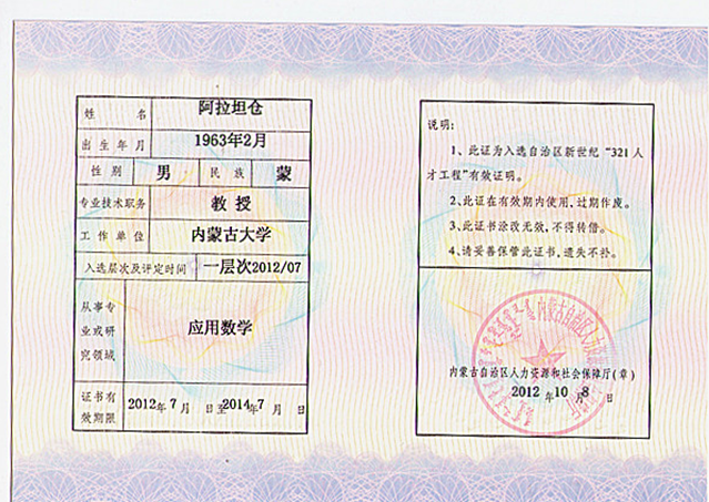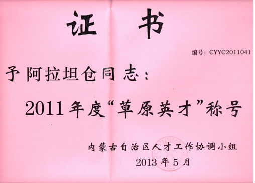 阿拉坦仓教授获得内蒙古自治区“草原英才”、自治区突出贡献中青年专家等称号
