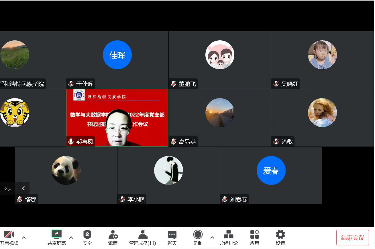根据学校《关于开展2022年度基层党组织书记抓党建述职评议考核工作会议通知》要求,数学与大数据学院党总支于2023年1月12日在线上开展了2022年度支部书记述职评议考核工作会议,会议由学院党总支副书记郝喜凤同志主持。会上,两位支部书记分别进行了述职,与会人员以无记名投票方式对两位党支部书记进行了民主评议。按照“一述一评”的要求,数学与大数据学院党总支副书记郝喜凤在认真听取两位党支部书记的述职后,逐一进行了点评。她肯定了各支部2022年党建工作中的成绩,指出了存在的问题以及今后努力的方向,并对党支部书记继续抓好基层党建工作提出了具体要求。两位党支部书记在听取点评后逐一表态,表示会对照问题及时进行整改,并结合提出的建议完善明年的工作计划,做出特色和亮点。