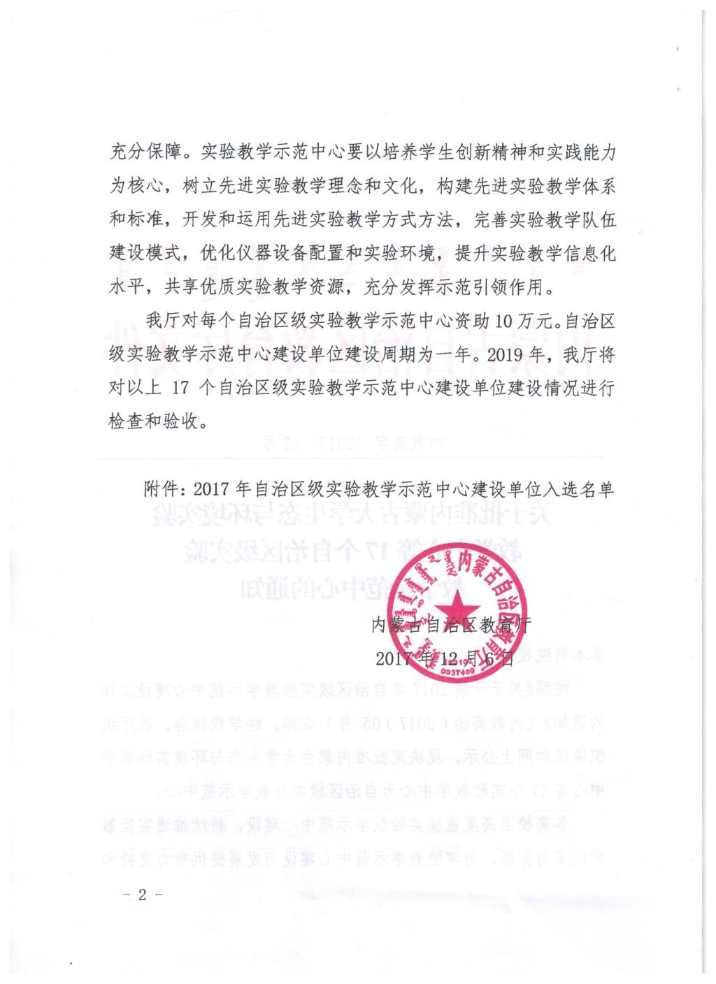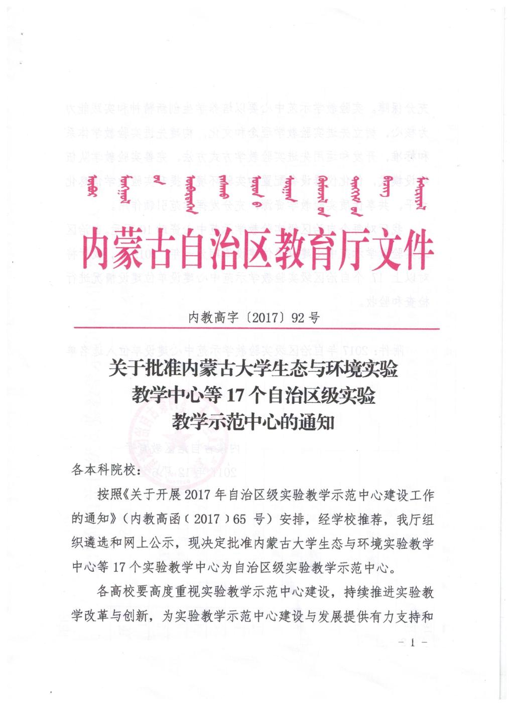 9.平台建设:关于批准内蒙古大学生态与环境实验教学中心等17个自治区级实验教学示范中心的通知(负责人:额尔敦布和)