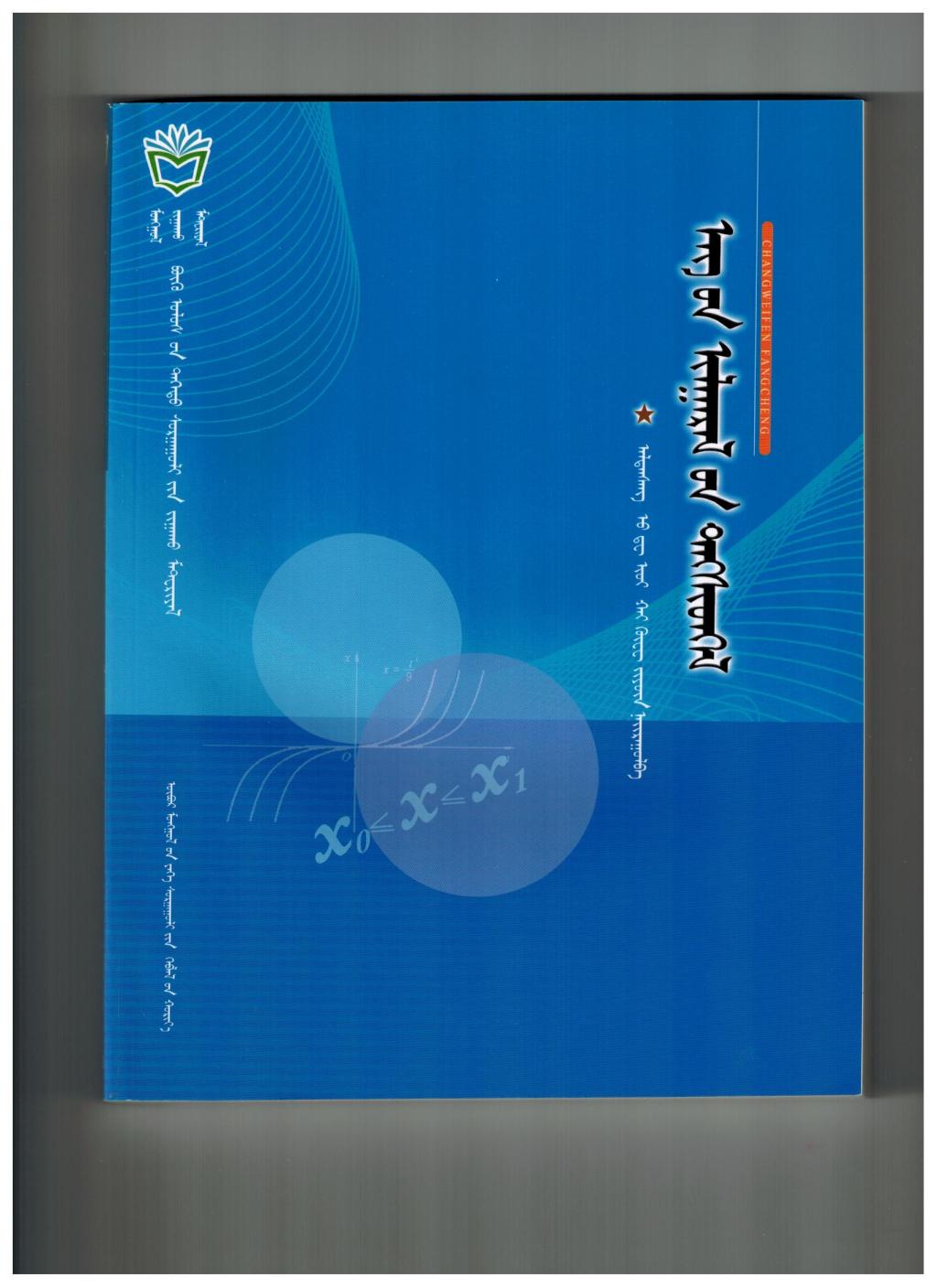 4. 出版蒙古文特色教材《常微分方程》、《高等数学》、《数学分析》和汉文教材《分块算子矩阵谱理论及其应用》、《线性代数》、《概率论与数理统计》及《常微分方程简明教程》,并广泛采用。《常微分方程》受到了内蒙古各高校师生好评:其内容合理、语言精练、思路清晰,符合蒙古族学生学习特点和接受水平;南京航空航天大学王在华教授也评价道:《常微分方程简明教程》选材和组织方式独特,很有特点。