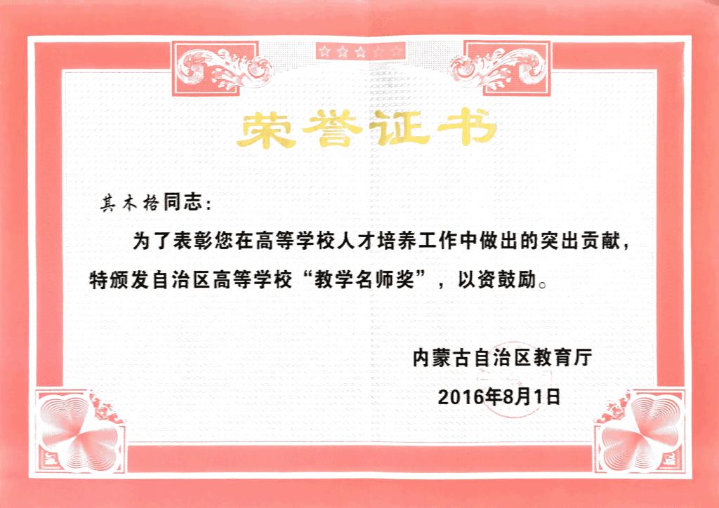 1. 围绕“四有”教师指向,注重团队建设。鸭脖“数学教学科研蒙汉双语教师团队”获批“全国高校黄大年式教师团队”;“数学分析系列课程蒙汉双语教学团队”、“微分方程系列课程教学团队”和“应用数学与大数据实验教学中心”入内蒙古高等学校教学团队和实验教学示范中心,起到了示范作用。现有国务院特殊津贴专家1人、自治区“教学名师”2人及“教坛新秀”1人,内蒙古高等教育学会数学教育分会理事长1人,中国少数民族教育学会数学教育专业委员会理事1人……。额尔敦布和等获内蒙古乌兰夫基金会奖励;《内蒙古日报》、《民族画报》报道阿拉坦仓事迹;网易新闻等报道鸭脖黄大年式教师团队。