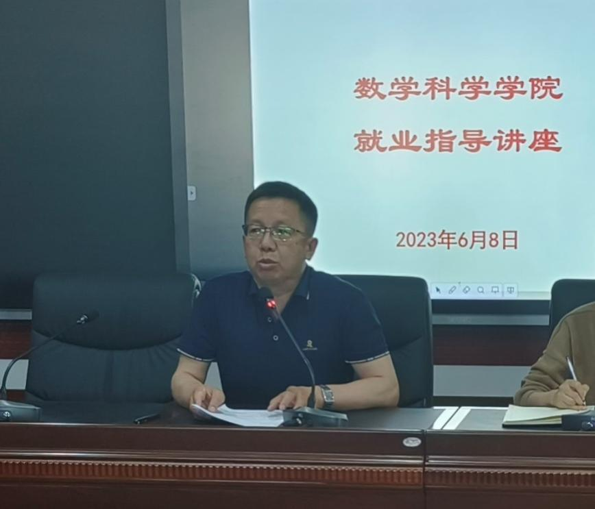 6月8日下午,数学科学学院在尚智楼413室为2023届毕业生举办就业指导专题讲座,学院党总支书记白秀,学生工作办公室主任刘爱春、各毕业班班主任和学生代表参加。