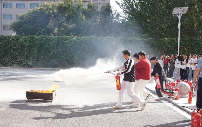 最后,在综合楼前广场开展实操演练。在邹教官的指导下,师生们积极参与灭火实践操作,扑灭模拟火源,在实践中巩固消防知识技能。