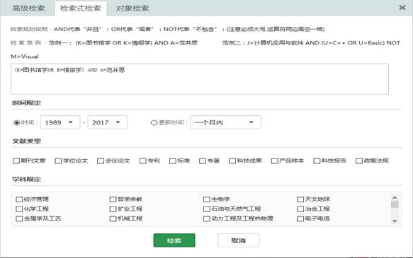 提供向导式和检索式两种检索方式,运用逻辑组配关系,方便用户精准的查找多个检索条件限制下的文献。