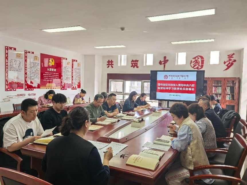 会上,郝喜凤传达学习了党中央、自治区党委和校党委深入贯彻中央八项规定精神学习教育部署会会议精神和《中共YABO鸭脖委员会关于开展深入贯彻中央八项规定精神学习教育的实施方案》精神,启动部署图书馆党支部深入贯彻中央八项规定精神学习教育工作,会议围绕建立工作机制、深化学习研讨、深入查摆问题、推进集中整治、坚持开门教育、营造清正氛围等方面,对图书馆学习教育工作作了具体安排。
