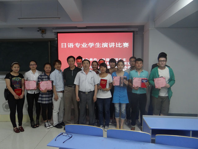 为了激发日语专业学生的学习兴趣,提高日语口语水平,外语系团总支、日语教研室于2013年5月30日晚7点30分在新教学楼618教室举行了日语演讲比赛,共有33名选手报名参赛。