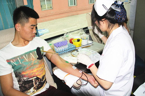 中午12点开始,采血车旁就井然有序地排起了长队,当天天气凉爽,为活动的顺利开展创造了有力条件。协会负责人布和同学在接受呼市电视台记者的采访时说:“此次活动得到了学院团委的认可和师生的广泛支持,同学们对献血知识也有了更加科学的了解。” 伊特格勒同学献血400cc,他表示:“能够力所能及地帮助别人,是我最快乐的事情!”