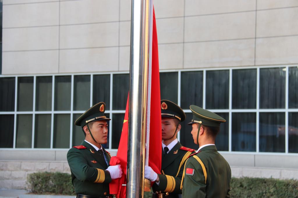 早上7:00,国旗护卫队穿戴整齐,迈着整齐的步伐,在庄严肃穆的《义勇军进行曲》中,将鲜艳的五星红旗冉冉升起,五星红旗迎风飘扬。