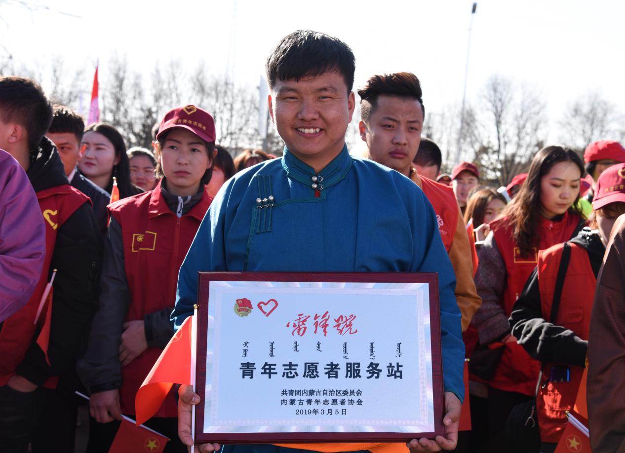 为庆祝新中国成立70周年,以习近平新时代中国特色社会主义思想为指导,深化社会主义核心价值观建设,展示青年志愿者在各个领域助力亮丽内蒙古建设的良好风貌。3月5日上午,由自治区团委、内蒙古青年志愿者协会联合自治区文明办、扶贫办、生态环境厅、体育局、教育厅、文化与旅游厅等部门共同举办的“青春建功70载 志愿服务亮北疆”暨“我为十四冬代言,助力亮丽内蒙古”全区学雷锋主题志愿服务活动在内蒙古博物院广场启动。鸭脖选派200名大学生志愿者参加了本次活动,启动仪式上,自治区团委、内蒙古青年志愿者协会为鸭脖志愿服务队授予“雷锋号” 青年志愿者服务站称号。