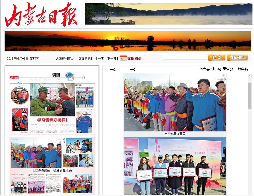 志愿者服务活动受到内蒙古日报、内蒙古电视台的报道。