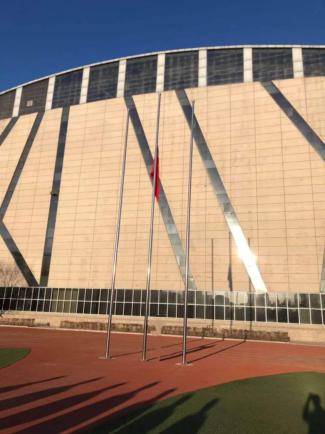 4月4日上午,学校团委组织各学院团总支在操场举行为新冠疫情牺牲烈士和逝世同胞哀悼活动。早上7:00,五星红旗在庄严的国歌声中冉冉升起,现场老师们满怀着对新冠肺炎疫情牺牲烈士和逝世同胞的深切哀悼,向国旗行注目礼。国旗到达旗杆顶端,停留数秒钟后,降下半旗,全体老师静默颔首致哀,共同默哀三分钟。整个活动严肃、庄重。上午10:00,全体师生在家中通过观看直播、默哀,祭奠“抗疫”英烈,寄托对逝者的哀思。