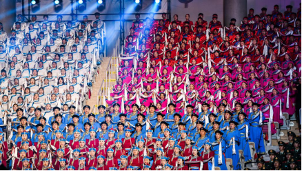 9月27日下午,“礼赞新中国 奋进新时代”内蒙古自治区庆祝中华人民共和国成立70周年群众大合唱在呼和浩特隆重举行。由音乐学院、外国语学院、教育学院443名同学组成的学生合唱团代表学校赴内蒙古体育馆参加此次群众大合唱。