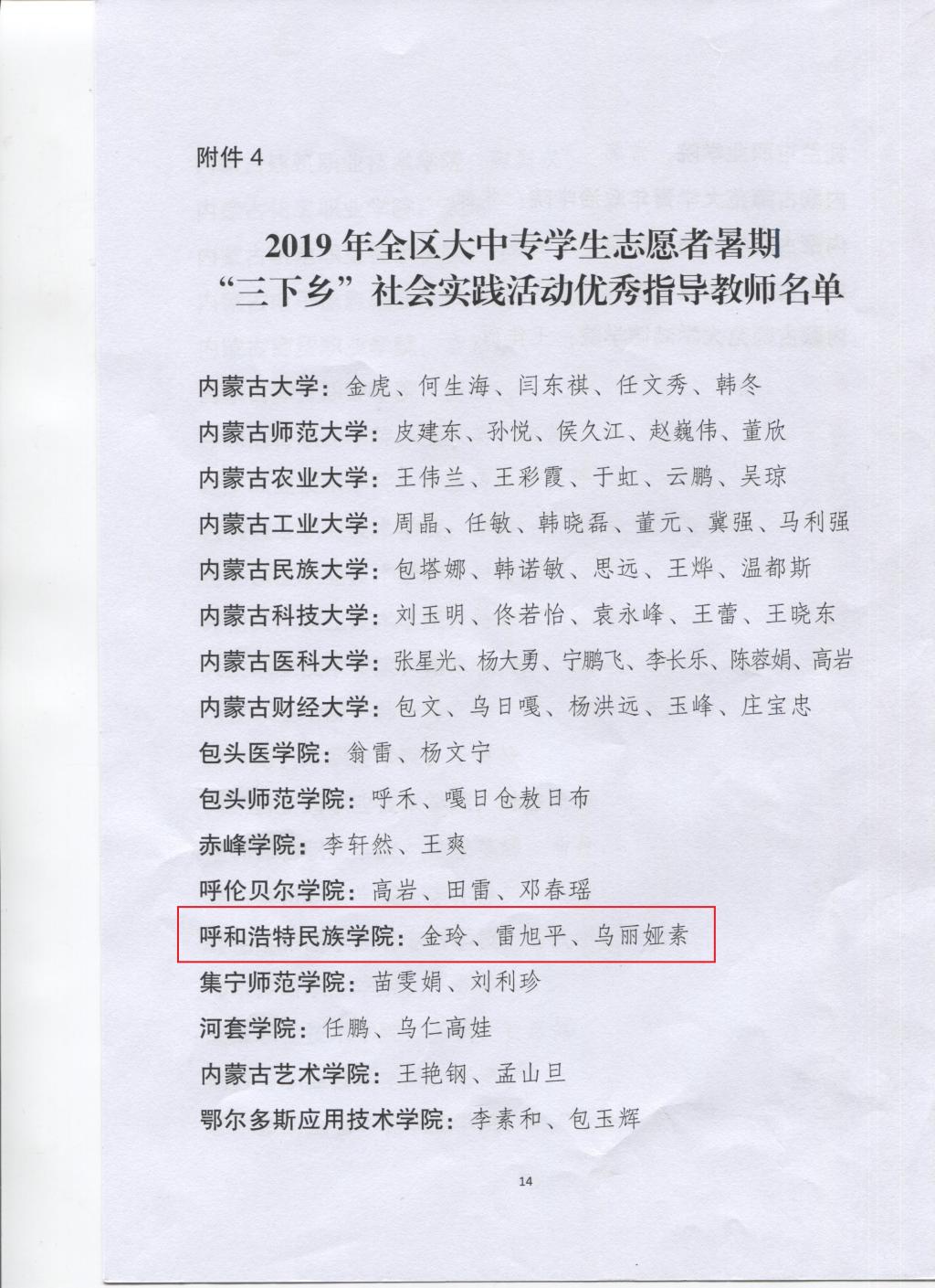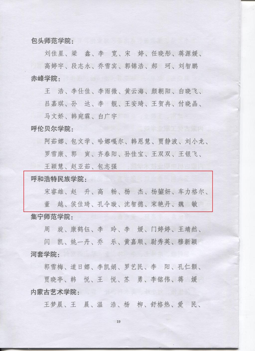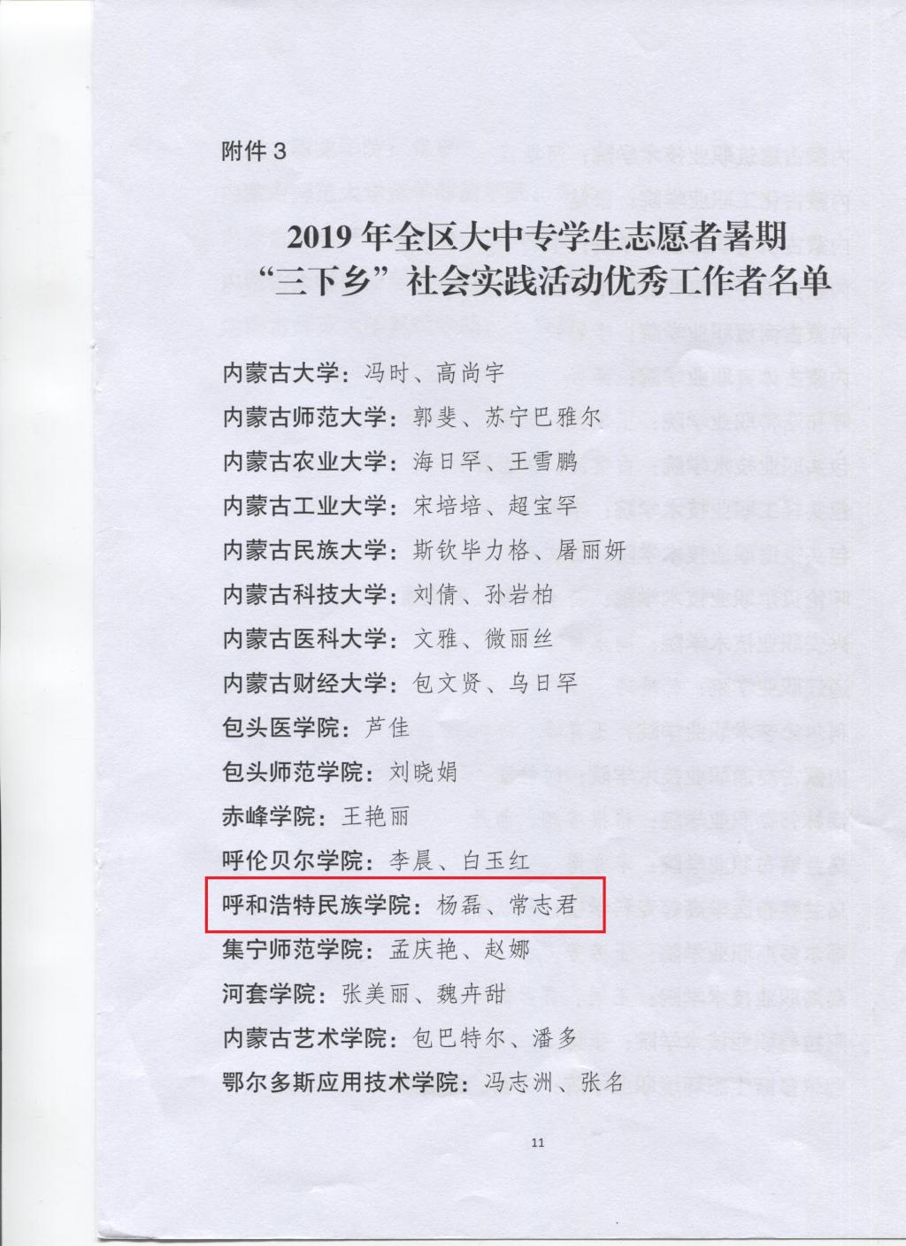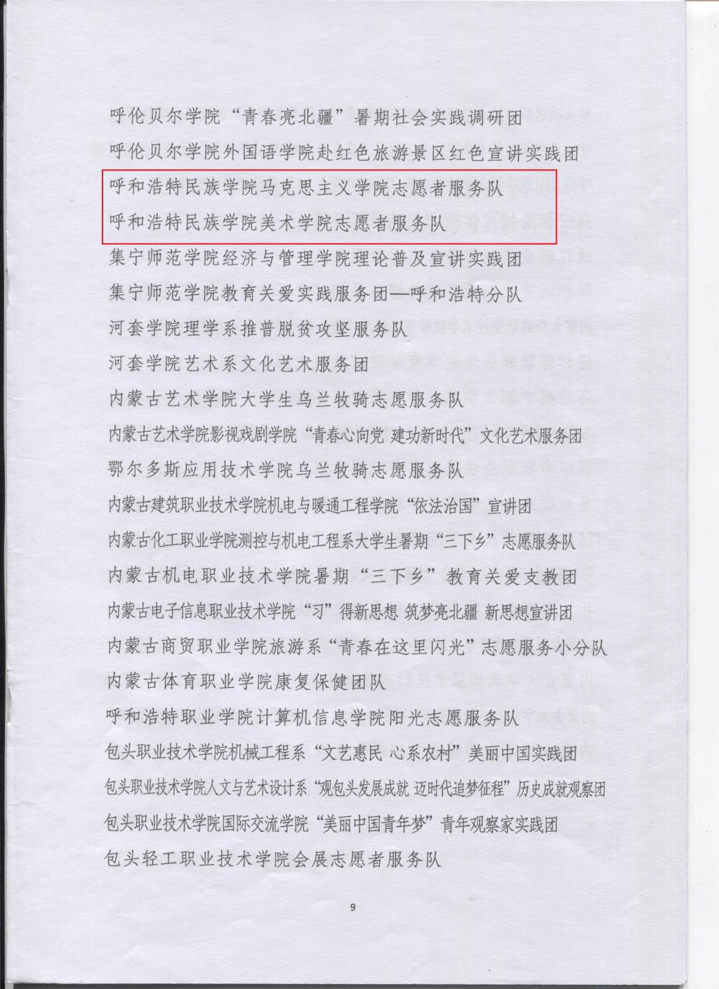 近日,中共内蒙古自治区委员会宣传部、自治区文明办、教育厅、团委、学联联合印发《关于表彰2019年全区大中专学生志愿者暑期“三下乡”社会实践先进集体和优秀个人的决定》(内团联发[2019]33号),表彰在2019年暑期“三下乡”社会实践活动中表现优秀、成绩突出的集体和个人。