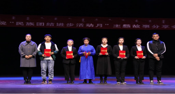 为大力推进民族团结进步教育,铸牢中华民族共同体意识,加强各民族学生交往交流交融,校团委于10月29日19:00时,在演播厅举行了“民族团结进步活动月”主题故事分享会。本次分享会由团委宣传部部长李云、外国语学院团总支书记潘兴安、化学与环境学院团总支书记乌依勒斯、新闻传媒学院团总支书记旭日和新闻传媒学院专职辅导员苏日巴特担任评委。