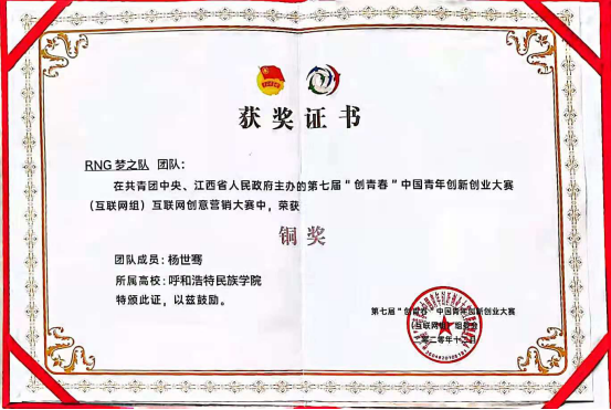 《RNG梦之队》团队获奖证书