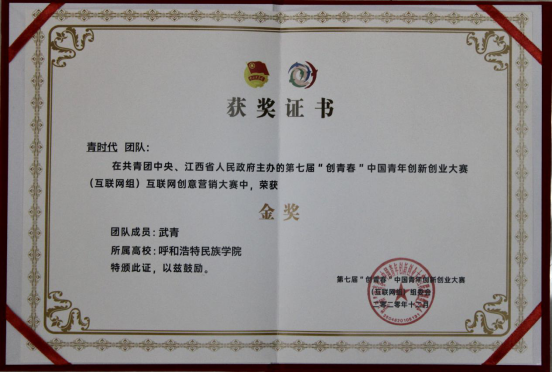 《青时代》团队获奖证书