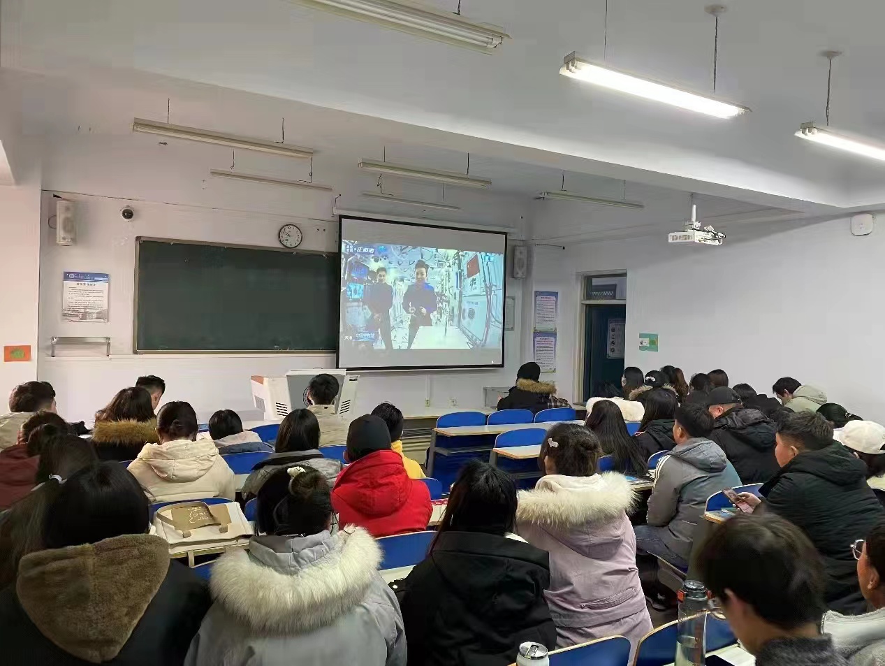 由中国载人航天工程办公室联合教育部、科技部、中国科协、中央广播电视总台共同主办的“天宫课堂”第一课于12月9日15:40正式开讲,神舟十三号乘组航天员翟志刚、王亚平、叶光富在空间站进行太空授课。校团委组织全校团员青年收看了“天宫课堂”第一课。