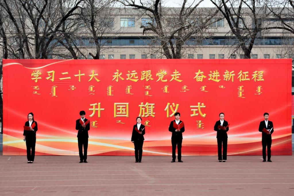 为深入学习宣传贯彻党的二十大精神,进一步加强爱国主义教育,增强师生集体荣誉感和民族自豪感,2月27日,学校在南区操场隆重举行“学习二十大 永远跟党走 奋进新征程”升国旗仪式。全体校领导、副处级以上干部、师生代表参加仪式。