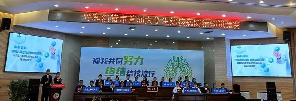 3月23日,由内蒙古自治区教育厅、内蒙古自治区卫生健康委员会、呼和浩特市卫生健康委员会主办的呼和浩特市首届大学生防治结核病知识竞赛在内蒙古工业大学(新城校区)精彩开赛。大赛的主题是“你我共同努力 终结结核流行”。来自驻呼8所高校代表队共24名学生参加了此次比赛。