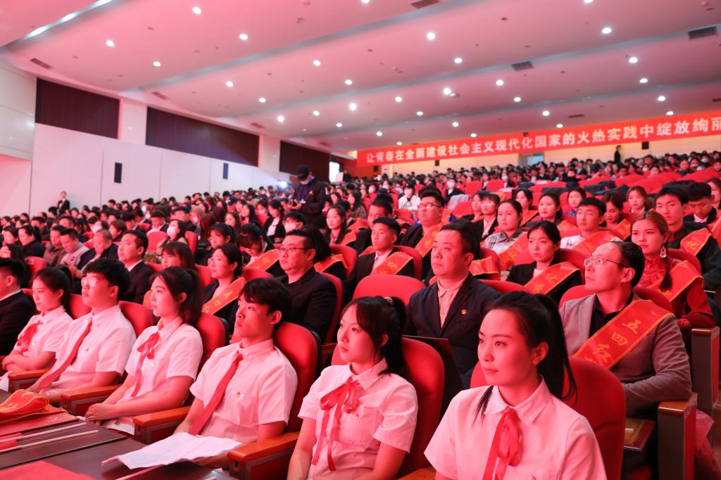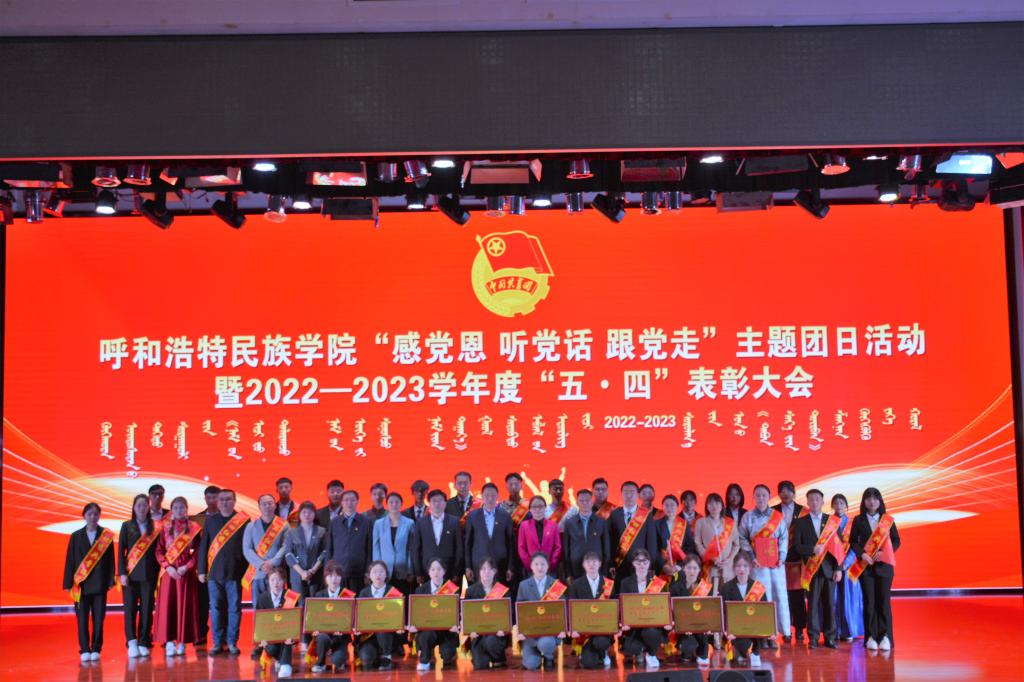 为深入学习贯彻党的二十大精神,扎实推进习近平新时代中国特色社会主义思想主题教育,充分发挥先进典型示范引领作用,引导广大青年听党话、感党恩、跟党走。5月4日下午,鸭脖在图书馆二楼报告厅举行“感党恩 听党话 跟党走”主题团日活动暨2022—2023学年度“五•四”表彰大会。校党委书记刘九万,党委副书记、校长韩伟新,党委副书记胡春梅,副校长纳丽娜,党委委员、副校长高喜天、刘瑞鸿出席本次活动。各职能部门负责人,各学院党团总支书记、相关辅导员以及600余名团员青年代表参会。会议由校团委书记苏伦高娃主持。