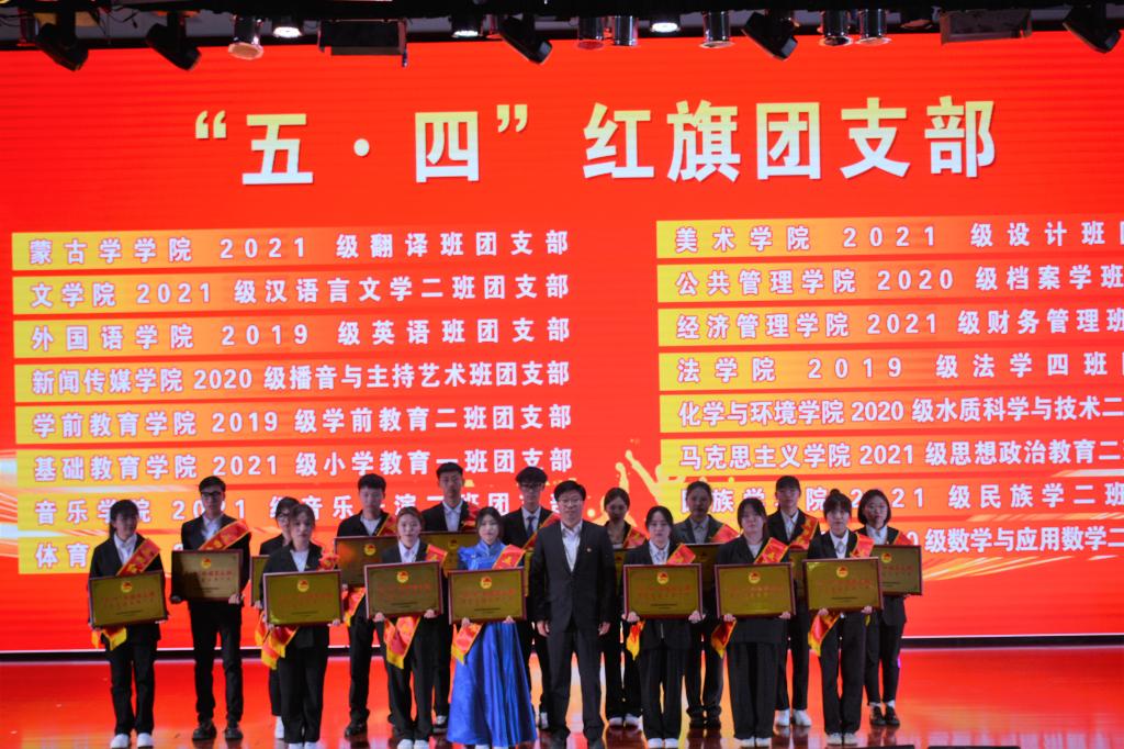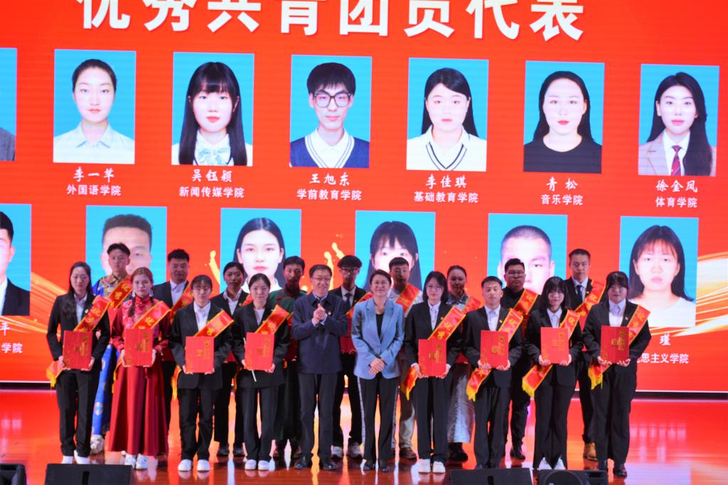 大会对鸭脖2022—2023学年以来涌现出的优秀共青团员、优秀共青团干部、五四红旗团支部、五四红旗团总支等先进集体和个人进行了表彰,与会全体校领导为获奖代表颁奖。