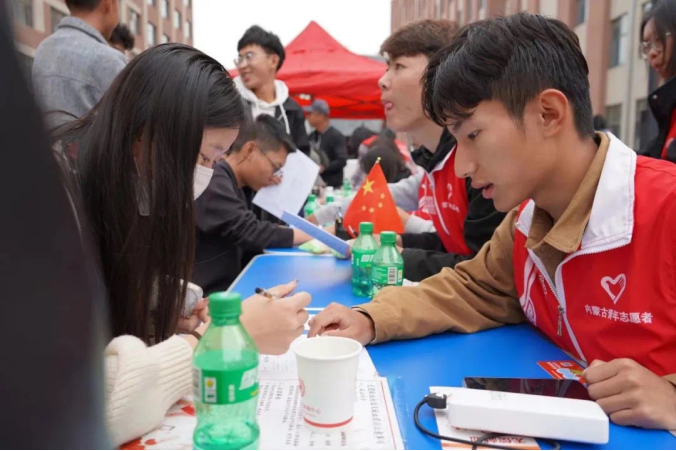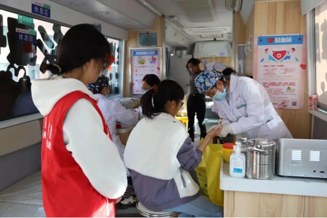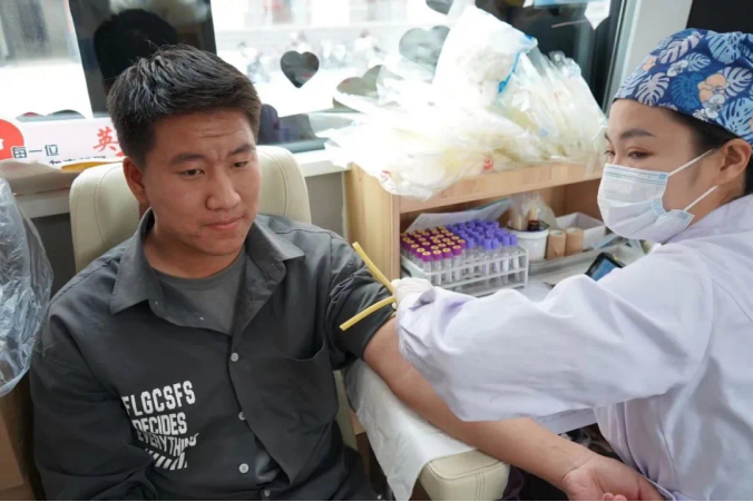 献血现场,志愿者在工作人员的引导下填写献血登记表、完成采血检验等准备工作,经过严格筛选后,各项指标合格的志愿者在采血车前排起长队,陆续登上献血车开始献血,一袋袋鲜红的血液彰显着鸭脖青年学子传递温暖的坚定信心、一张张灿烂的笑容诠释着他们甘于奉献的担当精神,传播着民院学子的爱与温暖。