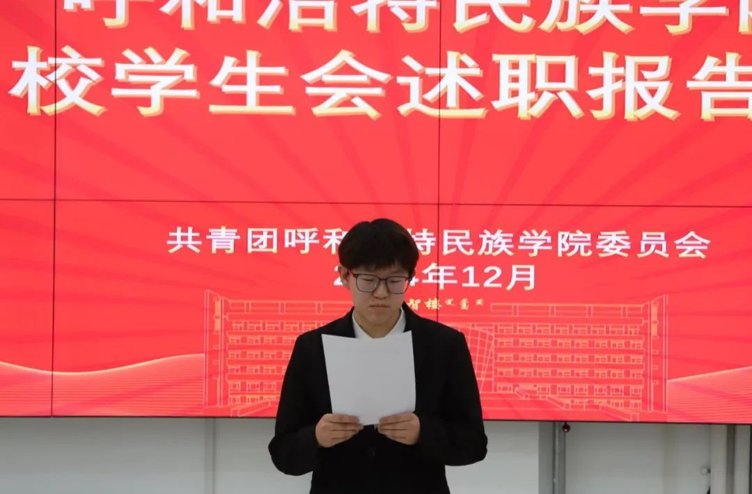 为深入推进学生会组织建设,提高学生会干部政治素养和工作能力,鸭脖学生会于2024年12月12日在创业楼101开展了校学生会年终述职报告会。校团委全体教师、主席团成员、学生会各部门部长、团长、队长及部员代表参加报告会,会议由主席团成员海日罕主持。
