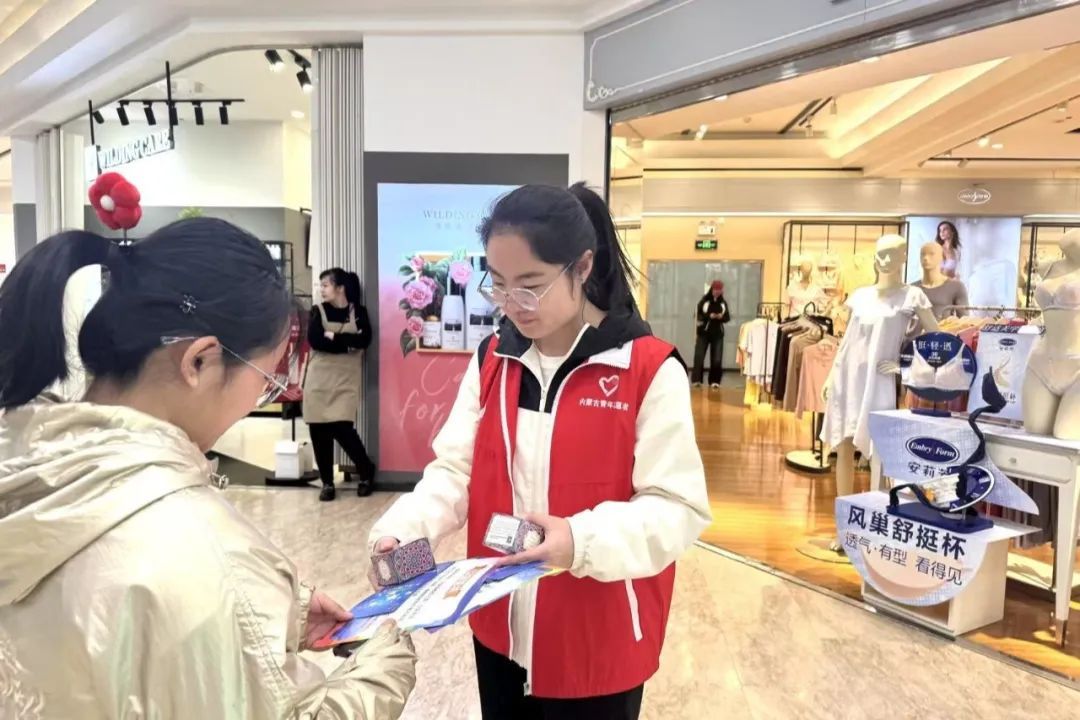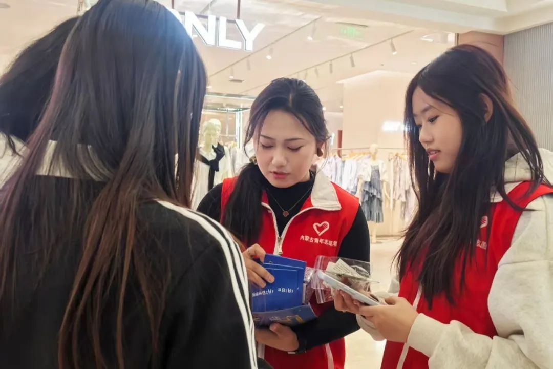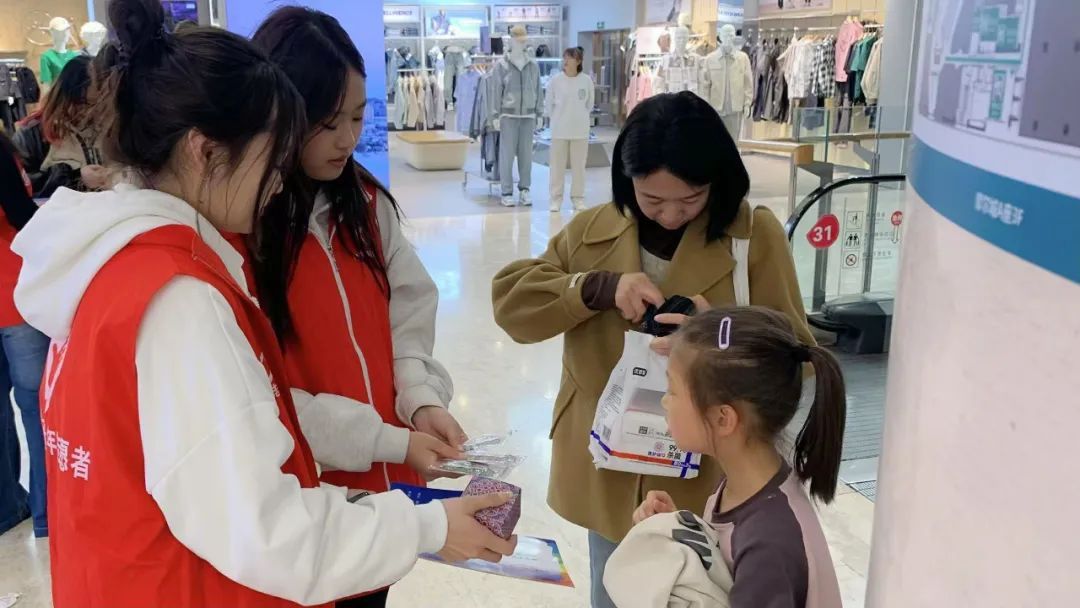 本次活动以组织义卖为主要形式,为孤独症孩子们募捐资金。活动伊始,志愿者们迅速集结领取义卖的工艺品,工艺品主要为自闭症孩子们亲手制作的手环以及香薰。志愿者们身着统一红色马甲,面带微笑,在义卖活动期间,主动热情地向商场内来往的人群发放“呼市爱加倍儿童公益残助中心”的相关宣传册,并且进行了细致的宣传和介绍。