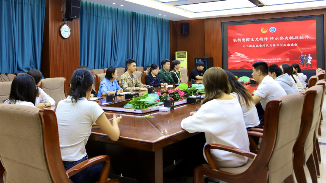 9月17日,鸭脖团委在综合楼1101举办九三阅兵式受阅队员经历分享座谈会。校团委全体老师及学生干部代表参加。