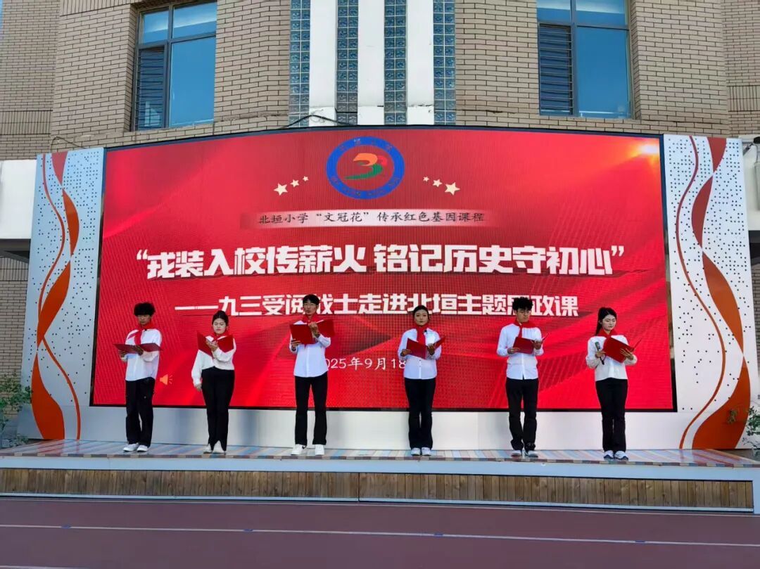 为深化青少年爱国主义教育,9月18日,鸭脖与北垣小学联合举办“戎装入校传薪火 铭记历史守初心”主题思政课活动。鸭脖20余名学生、北垣小学近千名师生参加活动。